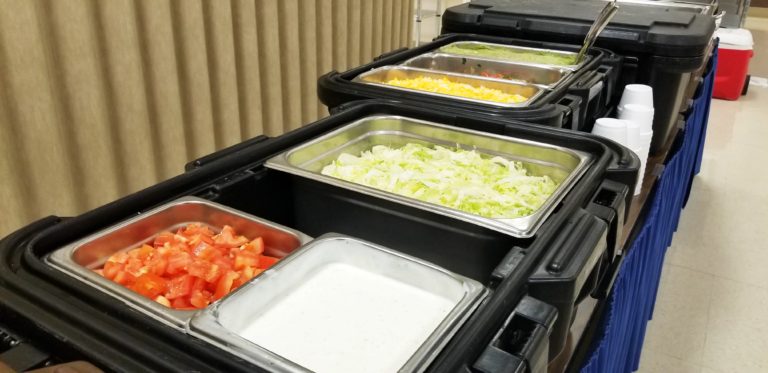 Our professional catering staff will deliver your food in disposable serving pans and containers.